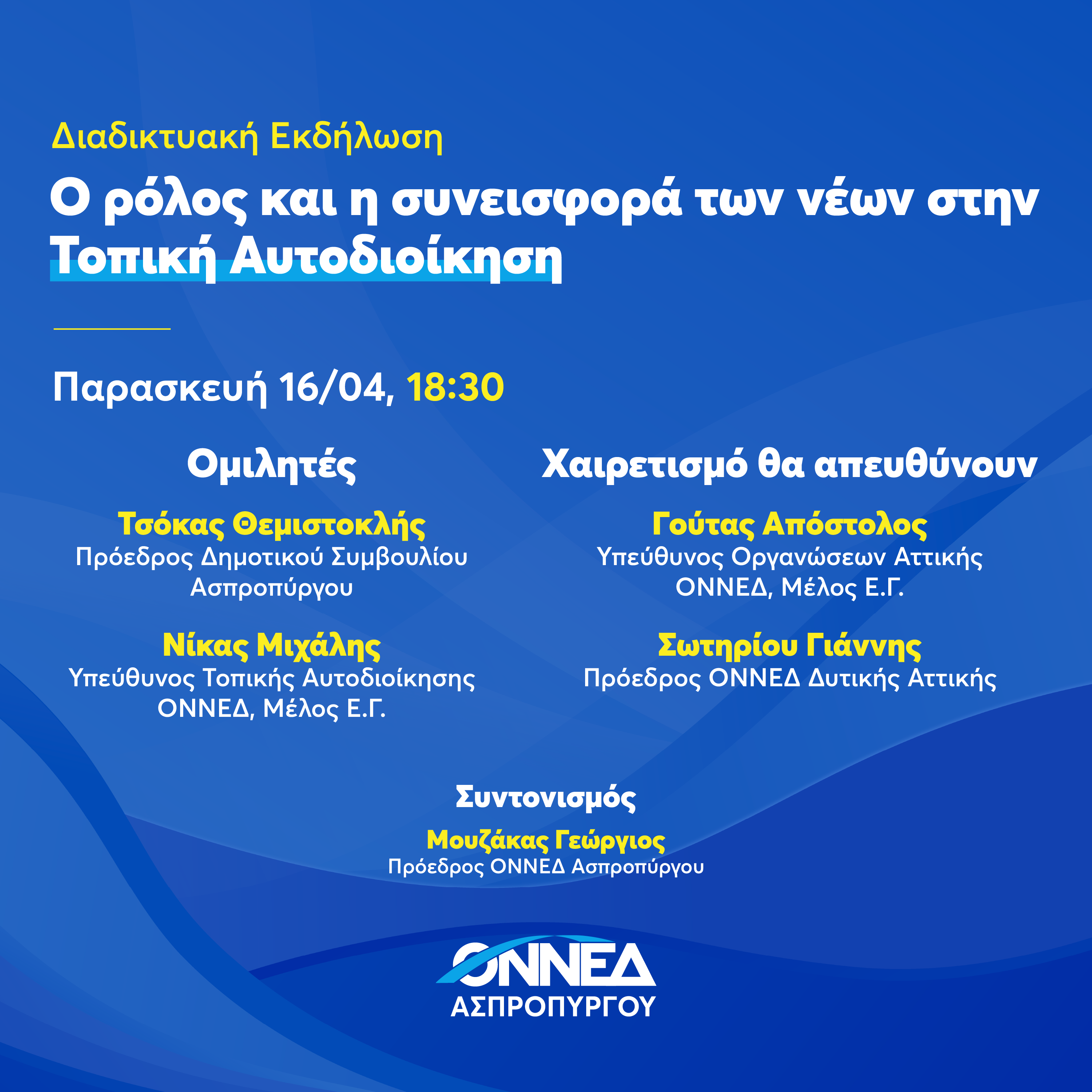 Διαδικτυακή εκδήλωση της ΟΝΝΕΔ Ασπροπύργου για την Τοπική Αυτοδιοίκηση