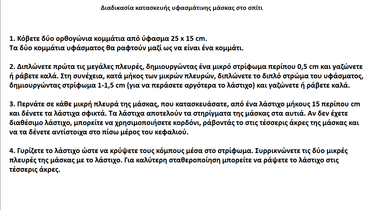 Οδηγίες κατασκευής υφασμάτινης μάσκας: