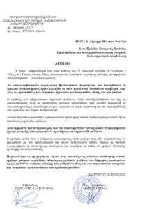 Δείτε το αίτημα που κατέθεσε η Ένωση στον Δήμο: