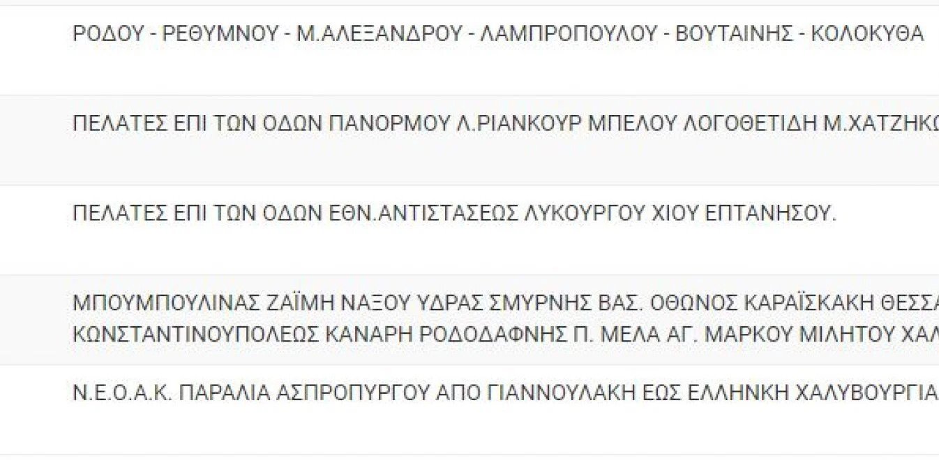 Αναλυτικά οι πίνακες με τις περιοχές της Αττικής και τις ώρες που θα σημειωθεί διακοπή ρεύματος: