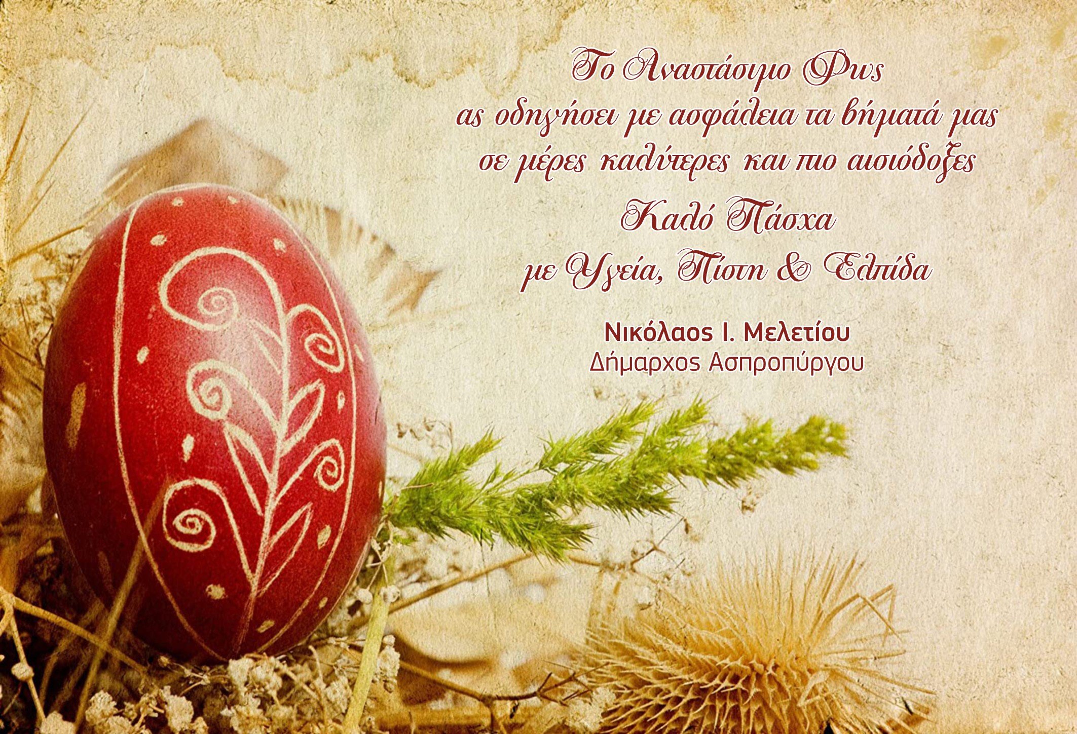 Ευχές για το Πάσχα από το Δήμαρχο Ασπροπύργου κ. Νικόλαο Μελετίου