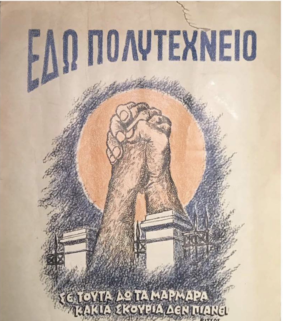 Από τις μέρες που οι φοιτητές, μαθητές, οικοδόμοι, απλοί άνθρωποι του λαού, προχώρησαν στην κατάληψη του Πολυτεχνείου και με μεγάλες λαϊκές εκδηλώσεις και πορείες διαδήλωναν, κατά της χούντας, με συνθήματα «Ψωμί Παιδεία Ελευθερία».