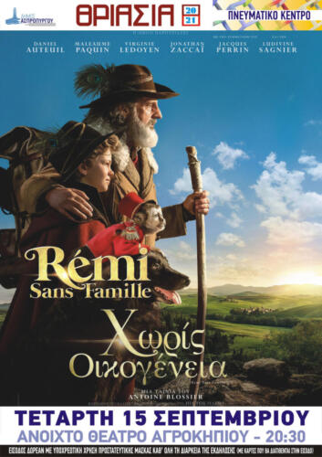 Ακολουθεί την Τετάρτη 15 Σεπτεμβρίου 2021 στις 20:30 στο Ανοιχτό Θέατρο Αγροκηπίου, η Κινηματογραφική Προβολή «REMI SANS FAMILLE » του Αντουάν Μπλοσιέ.