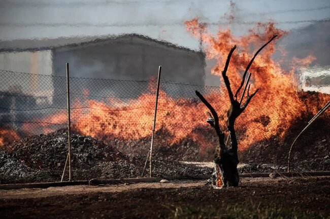 Όπως θα δείτε και εσείς στις παρακάτω φωτογραφίες, οι φλόγες έχουν κατακάψει τα πάντα στο πέρασμά τους, συνθέοντας μια εικόνα καταστροφής στην αποθήκη ξυλείας και στο χώρο γύρω από αυτόν.
