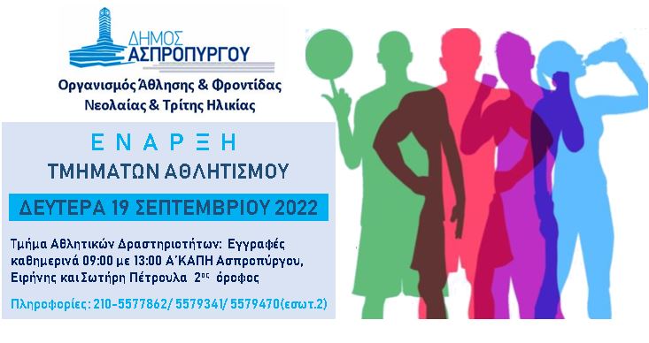 Έναρξη των εγγραφών στα τμήματα πολιτισμού και αθλητισμού του Δήμου Ασπροπύργου